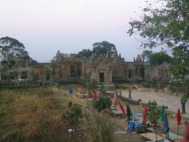 This little two-day trip happens in december 2003, after visiting a friend in Phnom Penh. I decide to visit Preah Vihear from Siem Reap. I heard about a new road between Anlong Veng and Preah Vihear ant want to check it out. During my evening walk around the market in Siem Reap there are plenty of motos offering me a short city ride. When I say "okay, let's go to Preah Vihear tomorrow", they usually start to laugh and tell me they have never been there before. Finally I meet one who is really interested, but has never done this trip either. I invite him for a Cambodian icecream. That gives him time to think about it and we can talk about the itinerary. He does not know about the road and I tell him that I want to go via Anlong Veng.